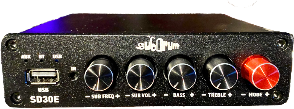 The SubDrum® 2.1 Class D Amplifier (SD30E) is the hub for all SubDrum® sound system configurations! This tiny amplifier is a completely self-contained audio control and bi-amplification system. It is perfectly suited to drive a pair of stereo SpeakerToms™ along with enough sub frequency power to drive any SubDrum® subwoofer (i.e. SubDrum® Coffee Table, SubDrum® Jr., the All-In ONE™ or the EKit subwoofers).