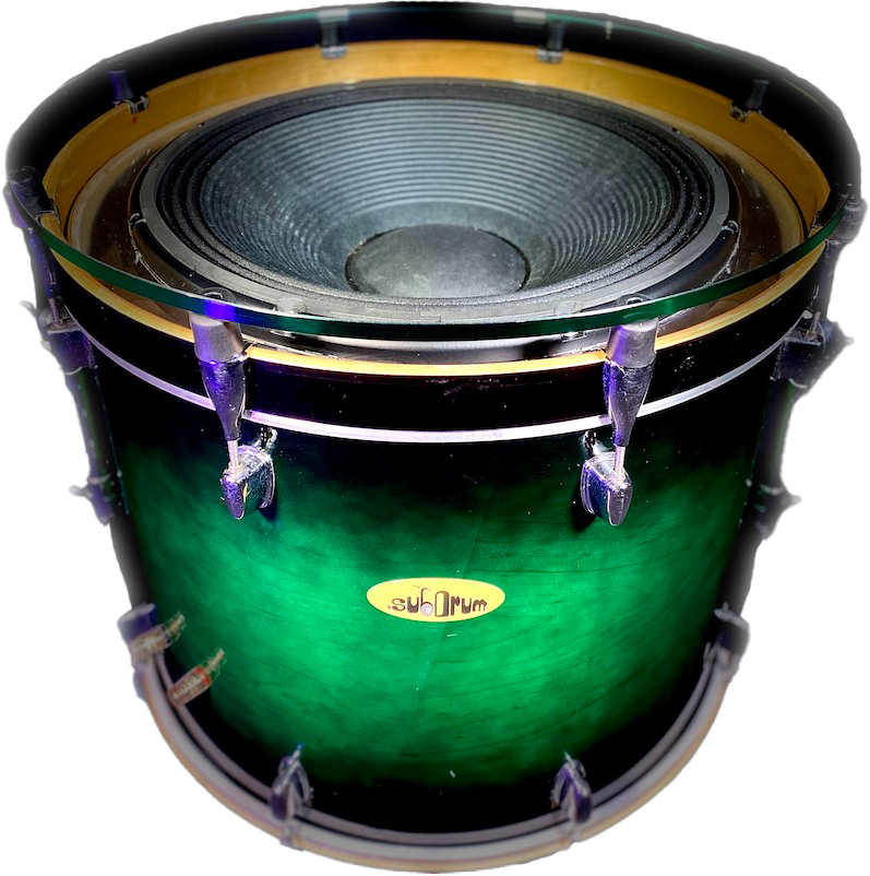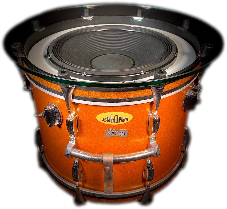 Vintage SubDrum® coffee & end table subwoofers in a variety of sizes, brands and finishes. We generally have a stock of used and vintage drums on hand, or we can produce one from your supplied special drum. Custom wraps including business logos and imagery may also be produced. Just inquire!